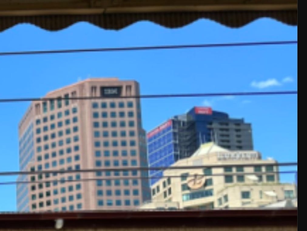 c) Another building in the background marked with "IBM".